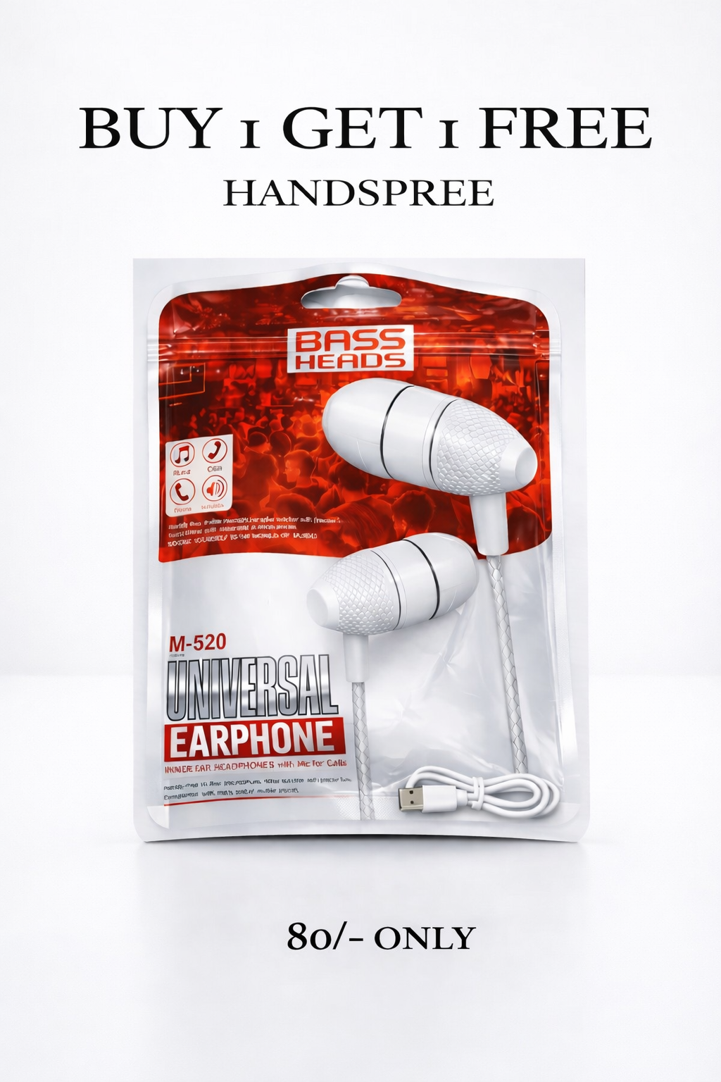 Enjoy powerful sound and everyday convenience with the Bass Heads M-520 Universal Earphone. Designed for clear audio and deep bass, these in-ear headphones are perfect for music, calls, and daily use. The ergonomic design ensures a comfortable fit, while the durable wired build makes them reliable for long-term use.